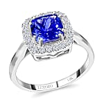Certified & Appraised Luxoro 14K White Gold AAA Tanzanite, Diamond Halo Ring,Wedding Rings For Women, Promise Rings 2.20 ctw (Size 10.0) (Del. in 10-15 Days)