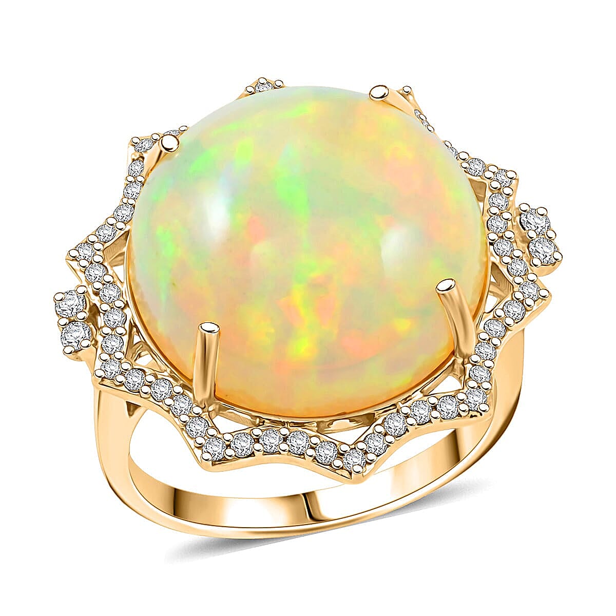 Certified & Appraised Luxoro 14K Yellow Gold AAA Ethiopian Welo Opal, White Diamond (I2) Ring (Size 10.5) 11.20 ctw