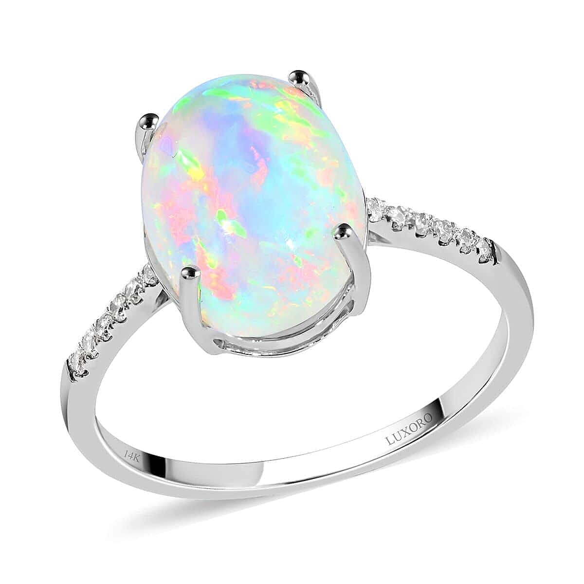 Elevate your jewelry collection with the exquisite Luxoro AAA Ethiopian Welo opal and diamond ring in 14K white gold. This stunning piece of fine jewelry is a true masterpiece that exudes luxury and elegance, perfect for the discerning buyer who demands nothing but the best.