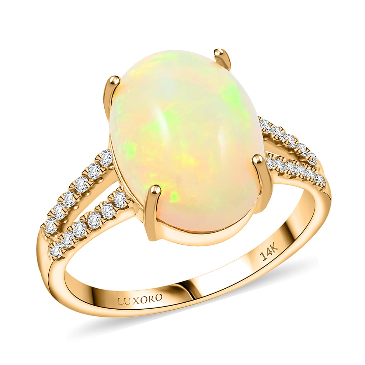 Certified & Appraised Luxoro AAA Ethiopian Welo Opal and G-H I2 Diamond 4.80 ctw Ring in 14K Yellow Gold (Size 9.0) 4 Grams