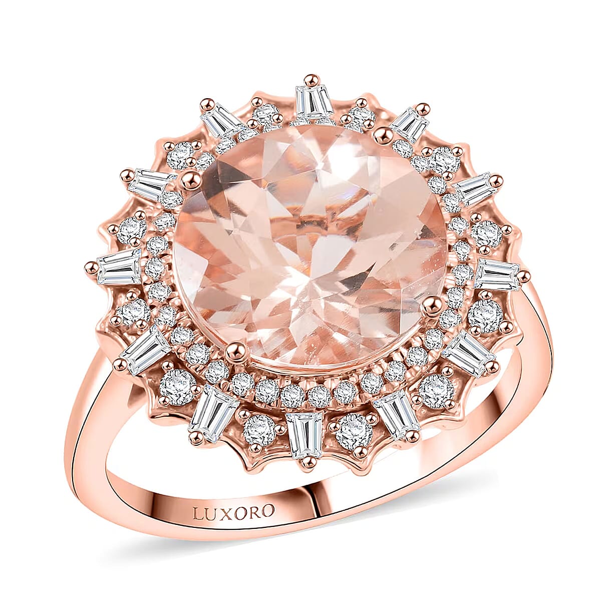 Capture attention with this Luxoro morganite and diamond ring in 10k rose gold. The AAA Marropino morganite stone radiates sophisticated, passionate feminine energy. You'll treasure how this elegant ring beautifully reflects your refined taste and personal luxury.