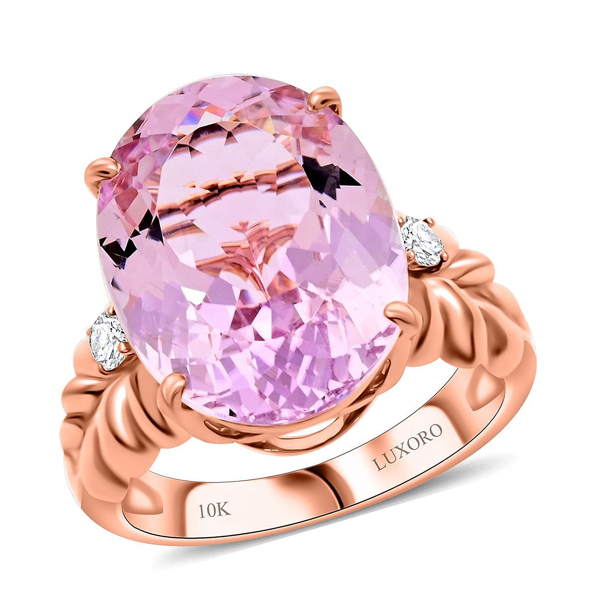 Certified & Appraised Luxoro AAA Martha Rocha Kunzite and G-H I2 Diamond 12.00 ctw Ring in 10K Rose Gold 5 Grams