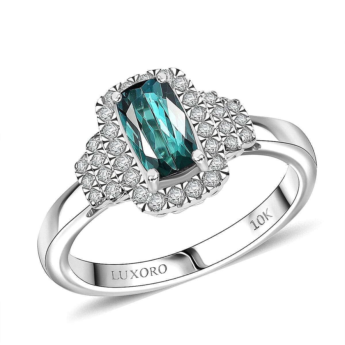 Certified & Appraised Luxoro AAA Monte Belo Indicolite and G-H I2 Diamond 1.11 ctw Ring in 10K White Gold (Size 11.0)