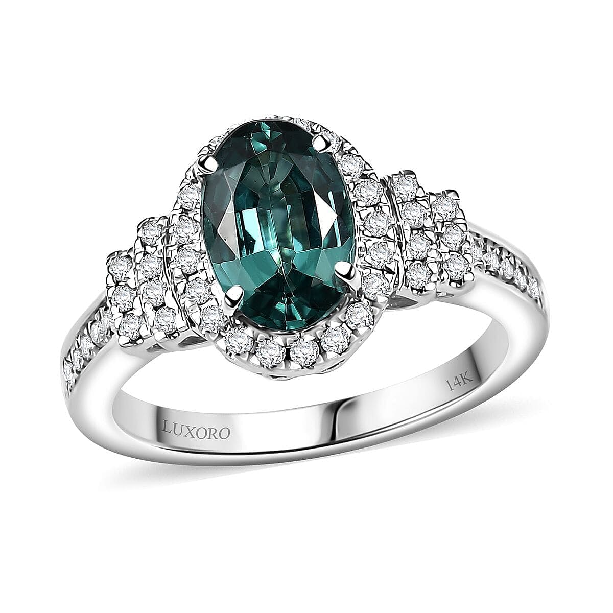 Certified & Appraised Luxoro AAA Pirineu Lagoon Tourmaline and I2 Diamond 2.05 ctw Ring in 14K White Gold (Size 8.0)