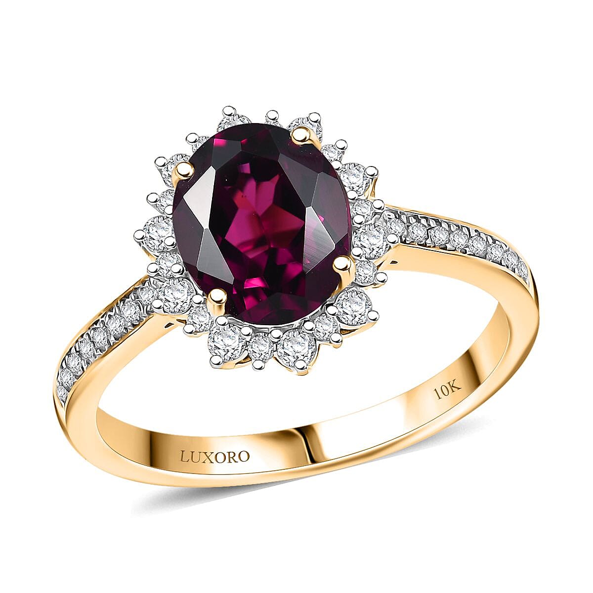 This Luxoro AAA radiant ember garnet ring is set in premium 10k yellow gold. The stunning sunburst ring is designed to capture attention and add a touch of elegance to any outfit. This women's ring is an actual statement piece for discerning jewelry lovers.