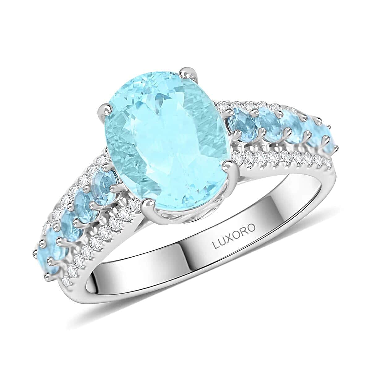 Certified & Appraised Luxoro AAA Santa Maria Aquamarine and G-H I2 Diamond 3.20 ctw Ring in 14K White Gold (Size 9.5) 4.56 Grams