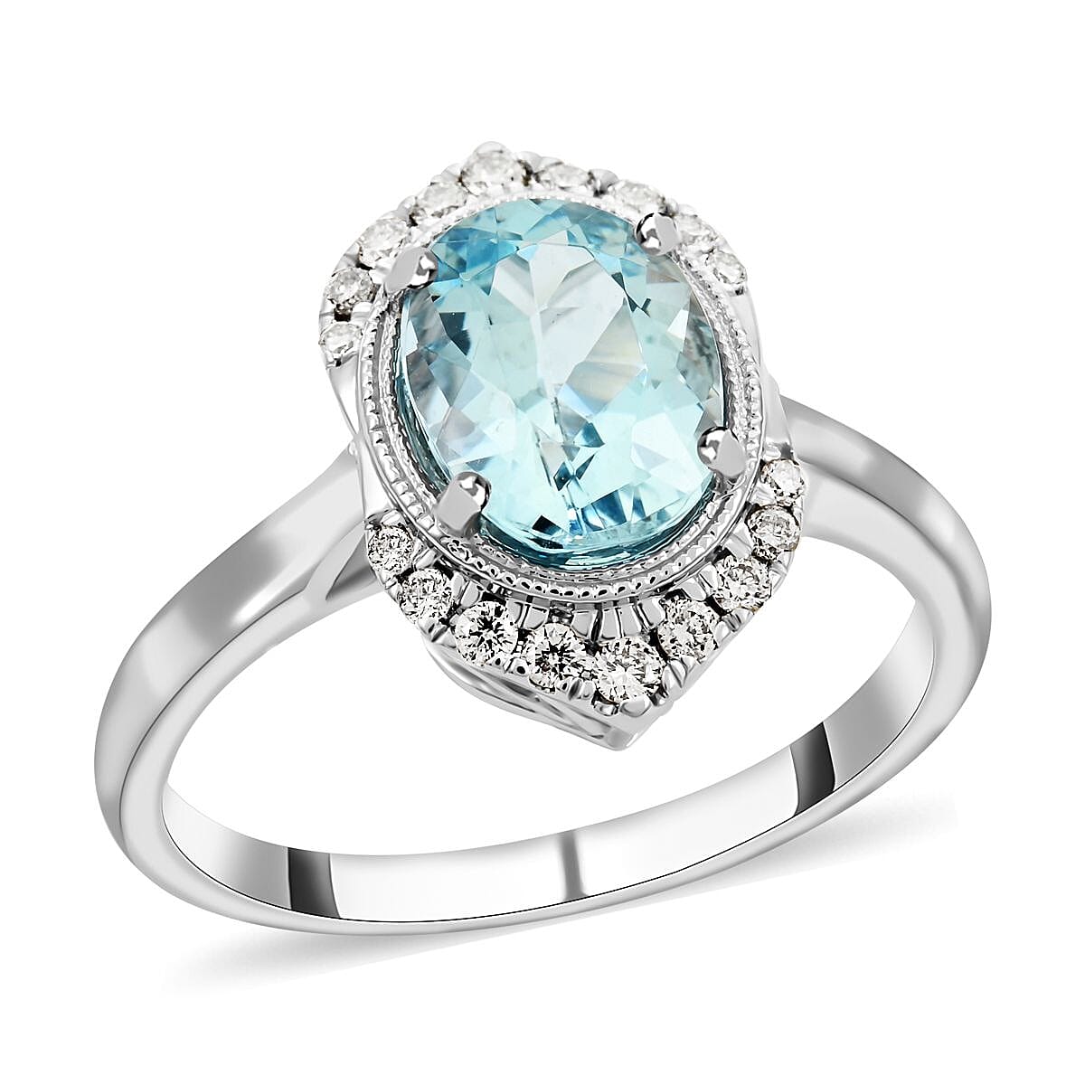 The Luxoro AAA Santa Maria aquamarine ring is a treasure of refined elegance and timeless design. Set in 10K white gold, this ring features an oval-shaped Santa Maria aquamarine, gracefully accented with diamonds. Certified and appraised, it reflects the pinnacle of premium gemstone jewelry.