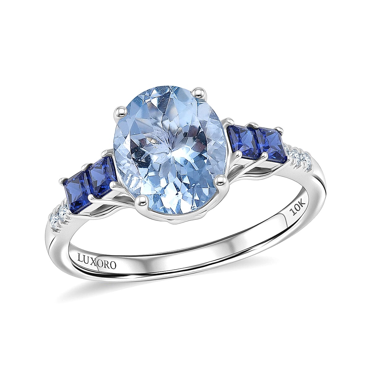 Certified & Appraised Luxoro AAA Santa Maria Aquamarine, Ceylon Sapphire and Diamond I2 2.79 ctw Ring in 10K White Gold
