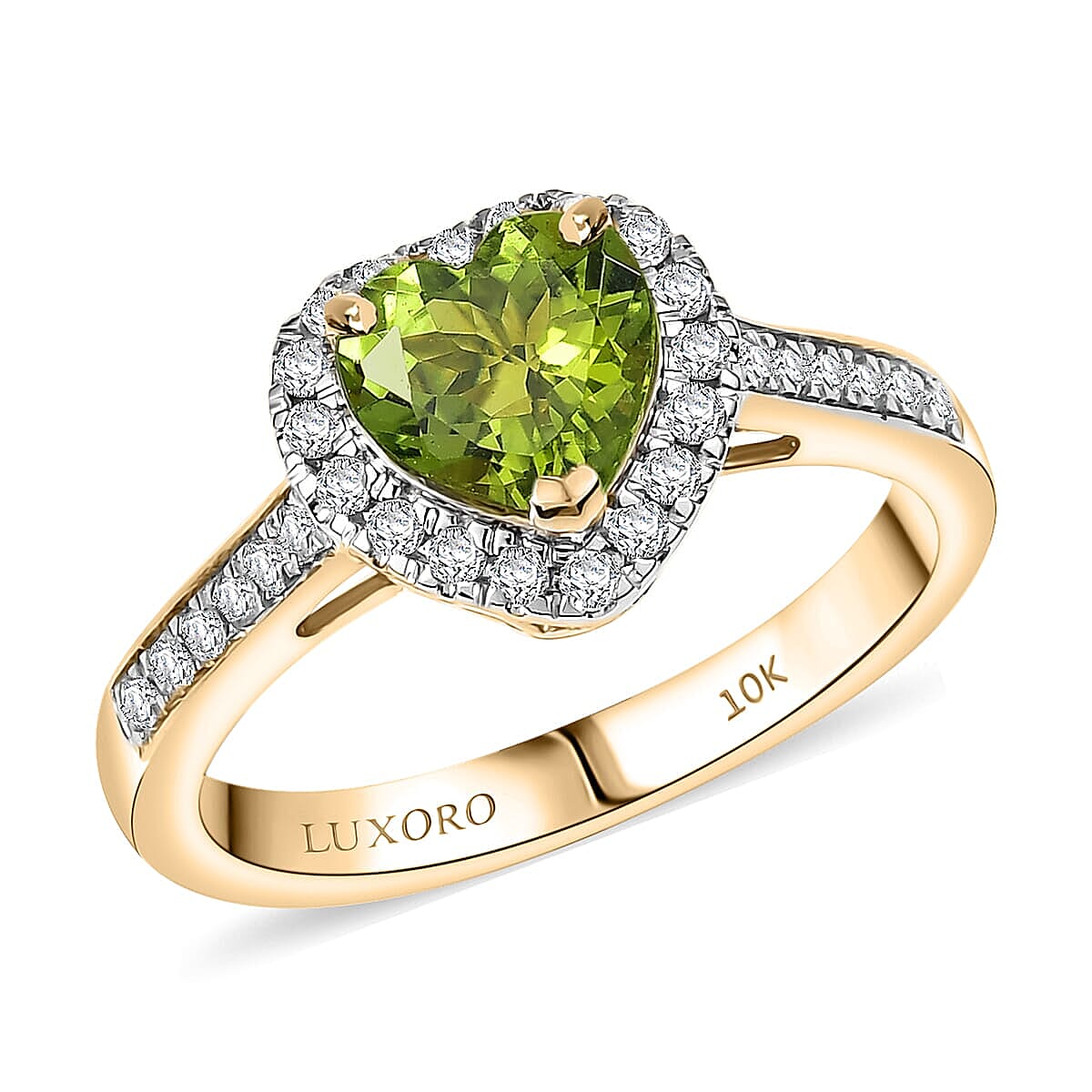 Certified & Appraised Luxoro AAA Sapo Green Tourmaline and I2 Diamond 1.40 ctw Ring in 10K Yellow Gold (Size 7.5)