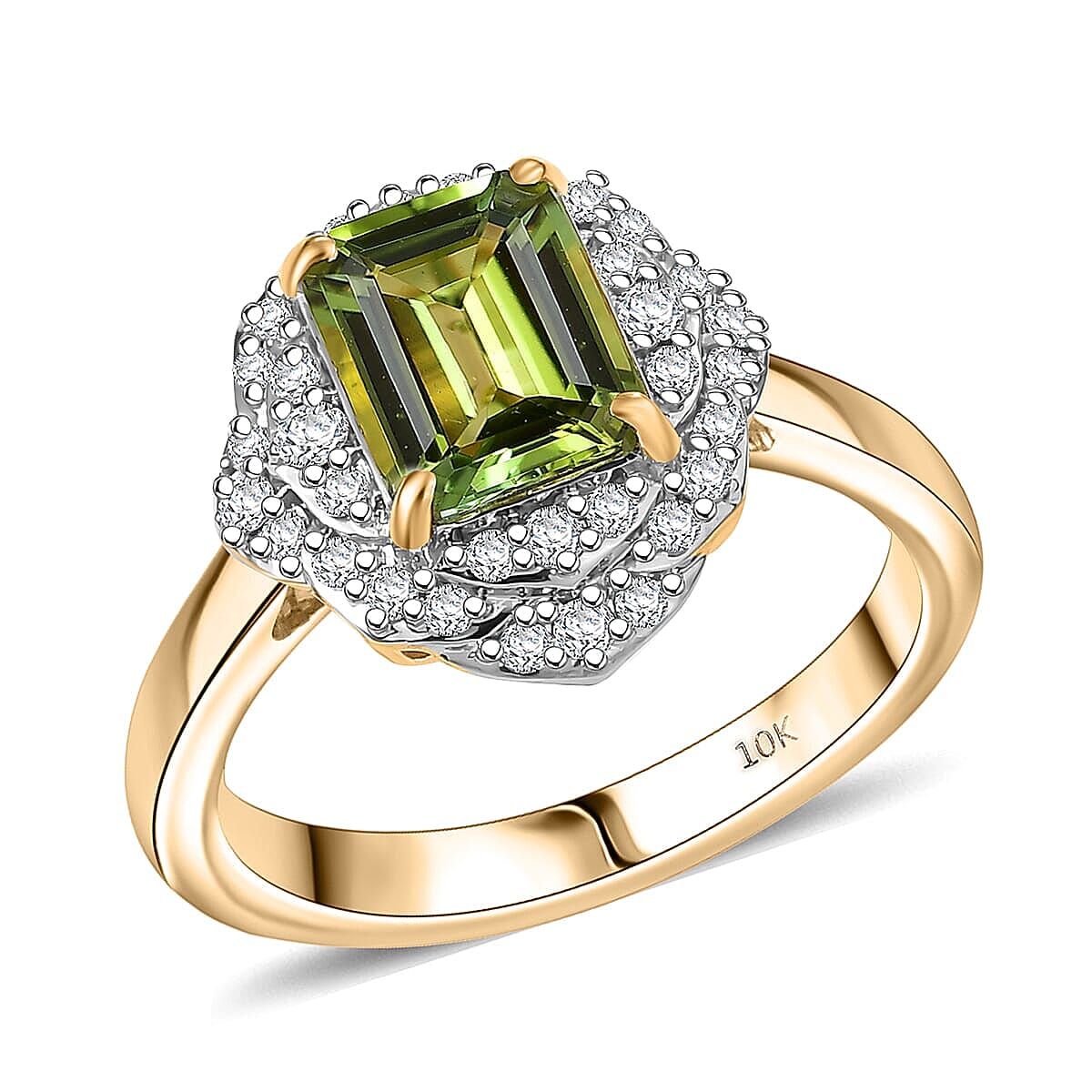 Showcase your elegance with the Luxoro green tourmaline ring in 10k yellow gold. The certified green tourmaline shines brilliantly, beautifully complemented by sparkling diamond accents. You’ll love how this 10K yellow gold ring exudes sophistication and makes a bold fashion statement.