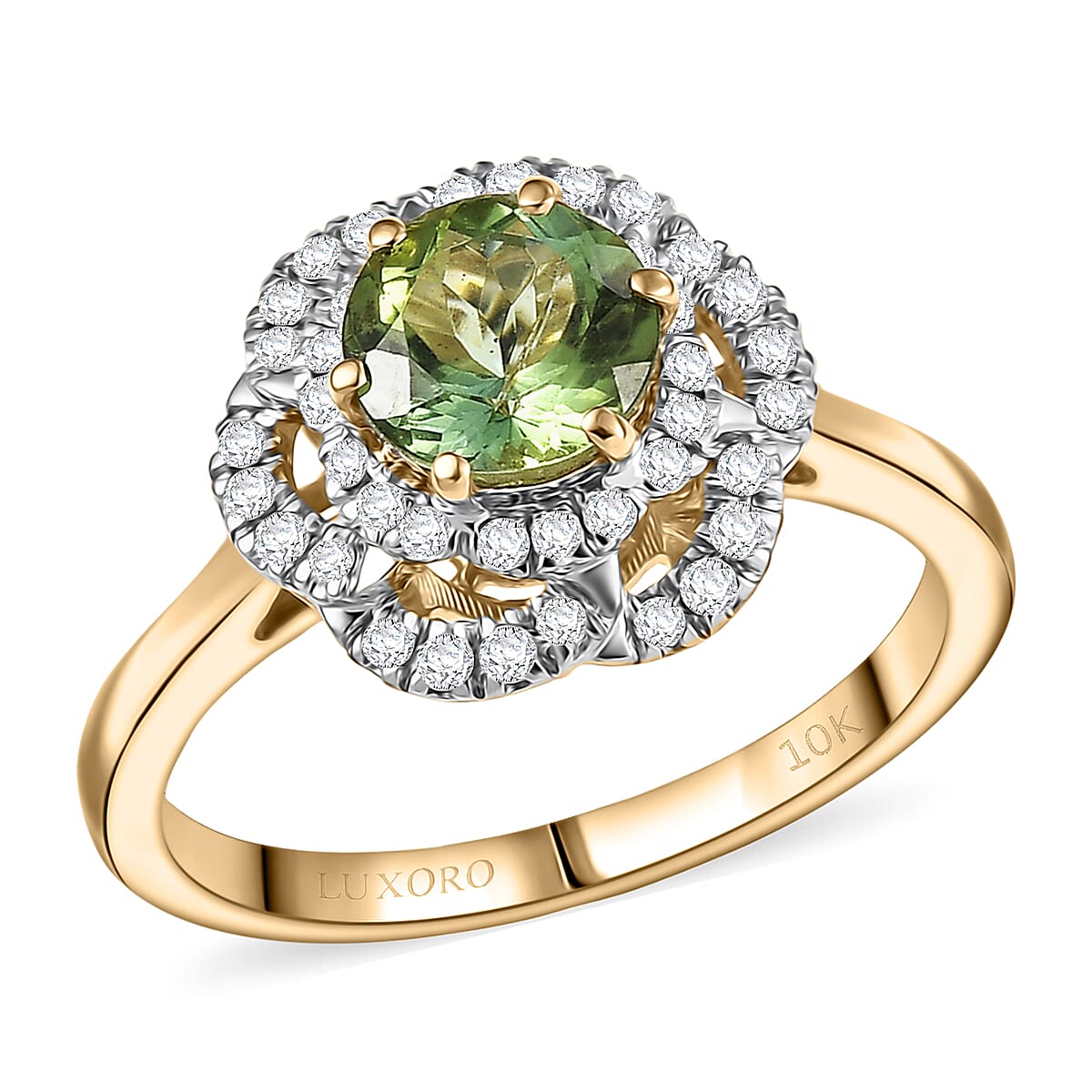 Captivate hearts with this Luxoro Sapo tourmaline ring in 10k yellow gold. The vibrant green center stone radiates against brilliant diamond accents. You'll admire how this luxury 10K yellow gold ring creates an impressive social status everywhere.