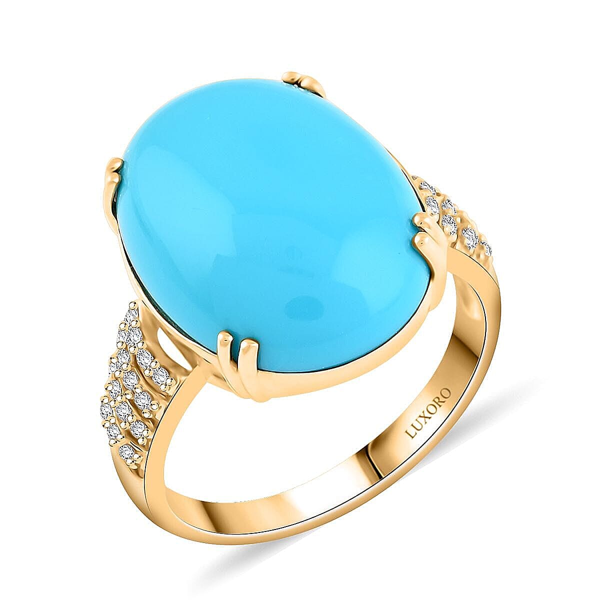 Certified & Appraised Luxoro AAA Sleeping Beauty Turquoise and G-H I2 Diamond 12.85 ctw Ring in 10K Yellow Gold (Size 7.5) 4.50 Grams
