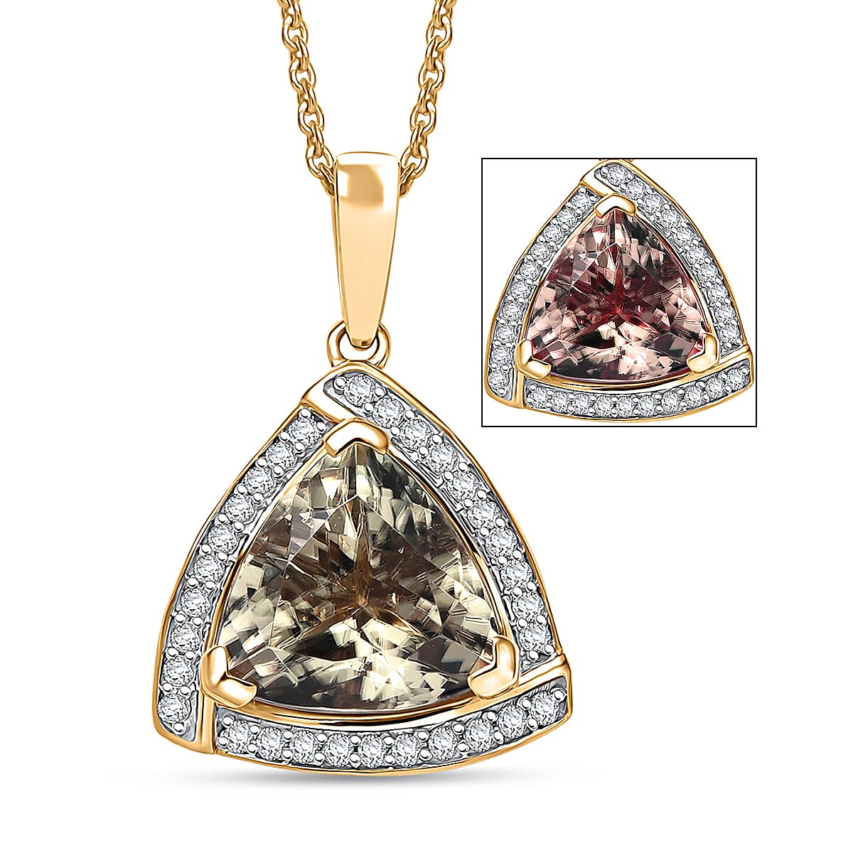 Enhance your style with this Luxoro turkizite and diamond pendant necklace in 14K yellow gold. This luxurious turkizite pendant for women exudes elegance with shining diamond accents and color-changing properties. Perfect for elevating your ensemble.