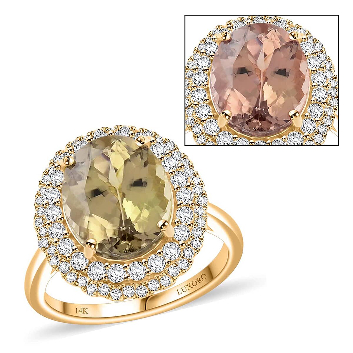 Elevate your style with the Luxoro turkizite ring in 14K yellow gold. The vibrant AAA turkizite showcases a unique Kiwi green brilliance that stands out. This halo ring commands attention with its prestigious flair and luxurious design.