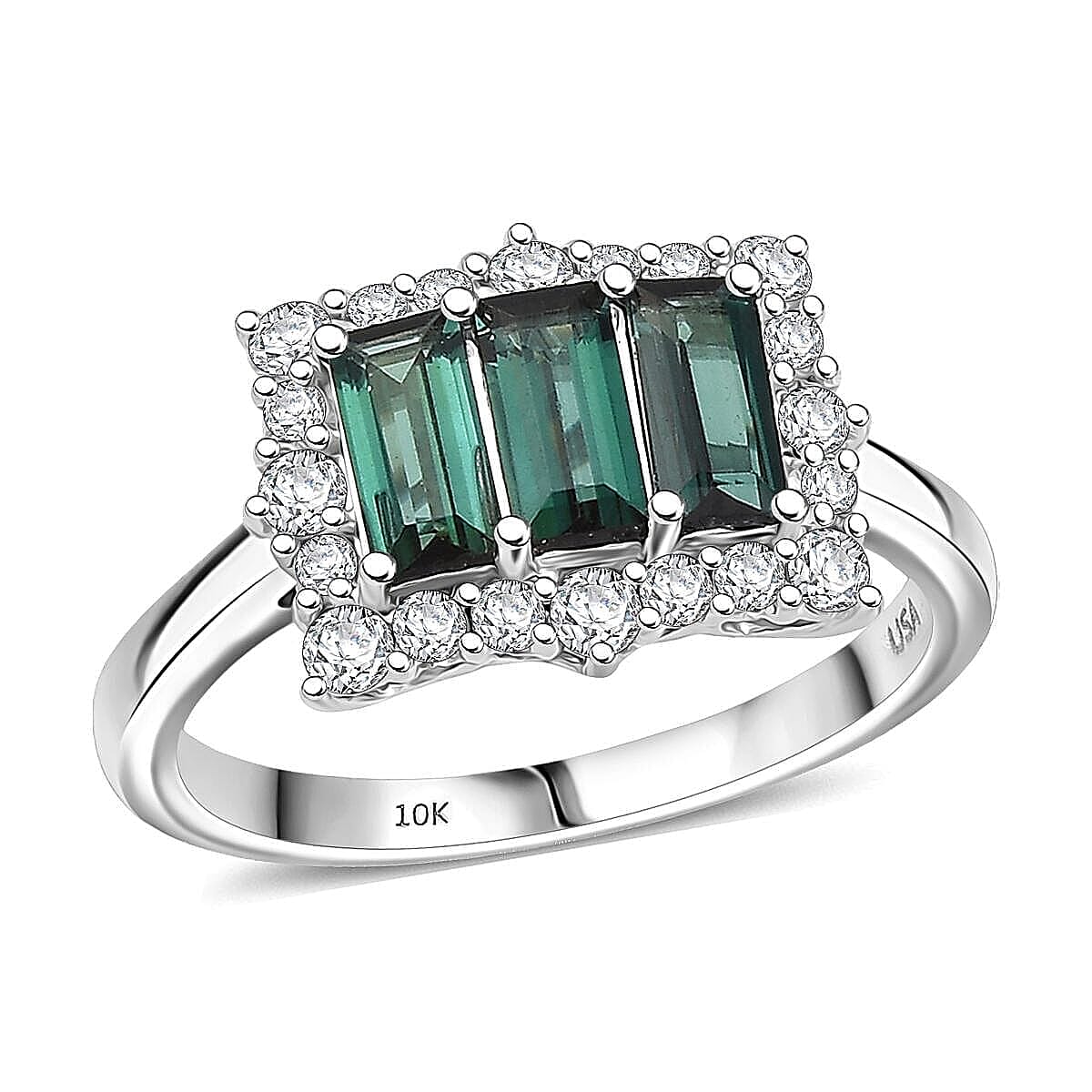 Certified & Appraised Premium Pirineu Lagoon Tourmaline and Luxuriant Lab Grown Diamond G-H SI 1.50 ctw Ring in 10K White Gold (Size 6.0)