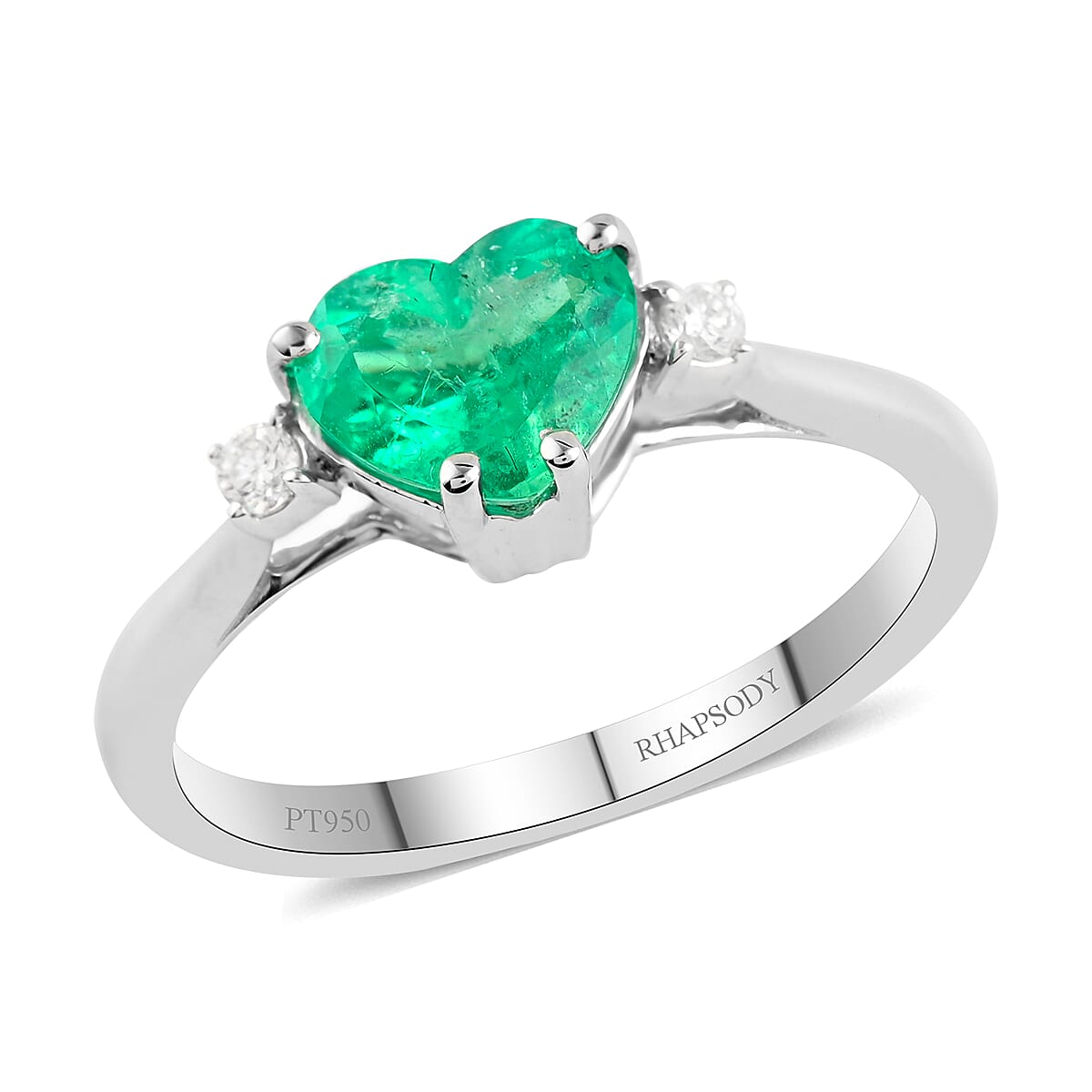 Certified & Appraised RHAPSODY 950 Platinum AAAA Colombian Emerald and E-F VS Diamond Ring (Size 6.0) 3.75 Grams 1.05 ctw