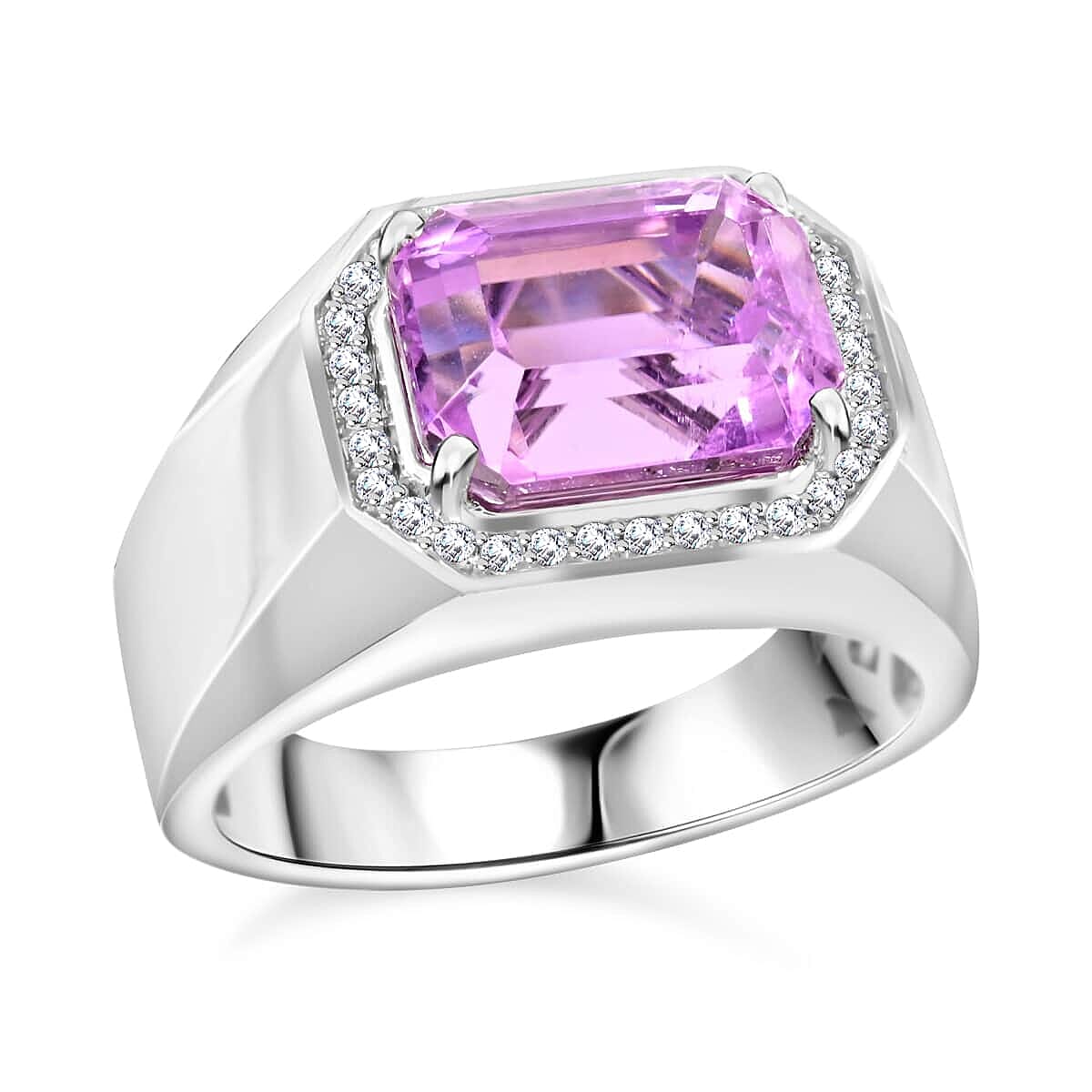 Command attention with the Rhapsody Patroke kunzite ring in 950 platinum. This high-quality halo ring showcases captivating violet-purple brilliance in every light. Your style gains distinguished elegance with this finely crafted platinum ring.