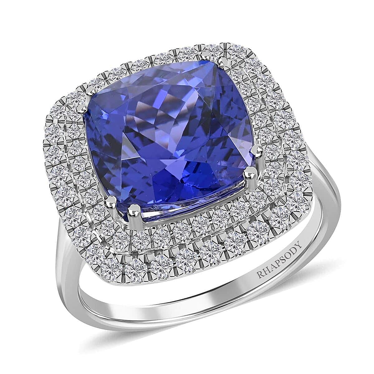 Certified & Appraised Rhapsody 950 Platinum AAAA Tanzanite and E-F VS Diamond Double Halo Ring (Size 6.5) 9.10 Grams 7.75 ctw