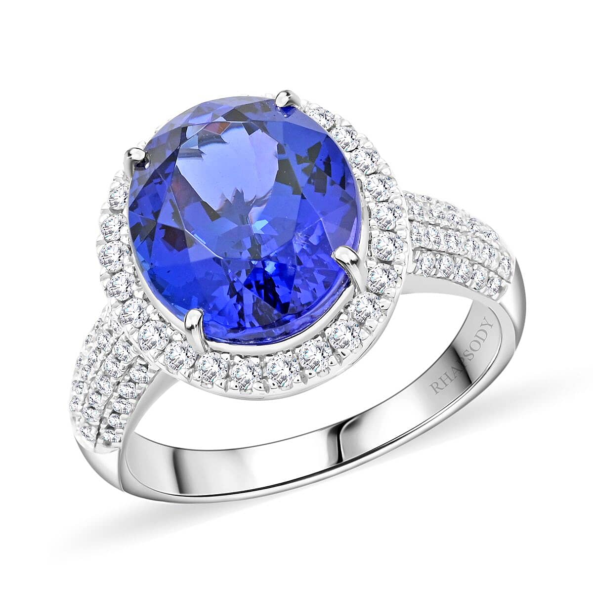 Refine your style with this Rhapsody tanzanite and diamond ring in 950 platinum. This luxury halo rign for women showcases a vivid AAAA tanzanite surrounded by brilliant diamond accents. A radiant symbol of elegance, it’s perfect for life’s most treasured occasions.