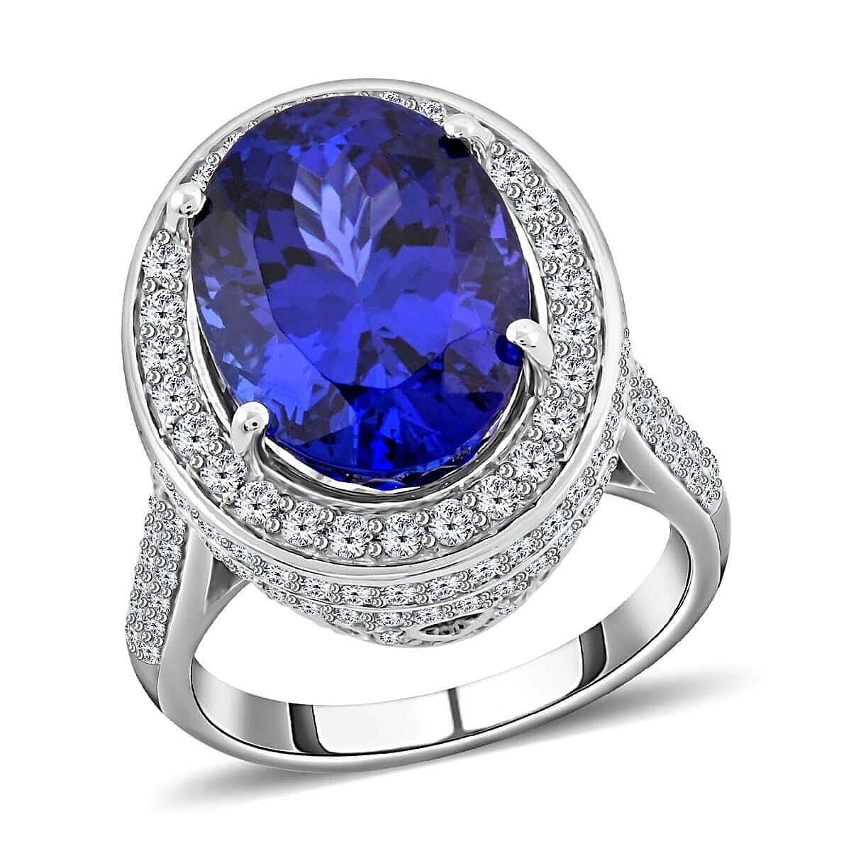 Certified and Appraised Rhapsody 950 Platinum AAAA Tanzanite and E-F VS Diamond Halo Ring (Size 6.0) 12.45 Grams 11.30 ctw