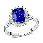 Certified and Appraised Rhapsody 950 Platinum AAAA Tanzanite and E-F VS Diamond Halo Ring (Size 7.5) 5.58 Grams 2.55 ctw