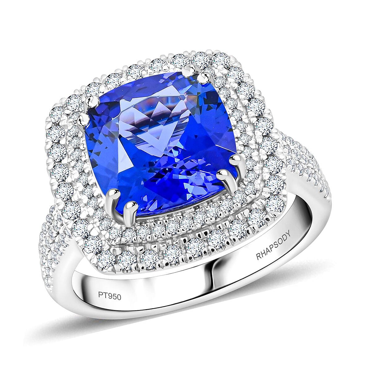 Certified & Appraised Rhapsody 950 Platinum AAAA Tanzanite and E-F VS Diamond Ring (Size 6.5) 10.45 Grams 5.75 ctw