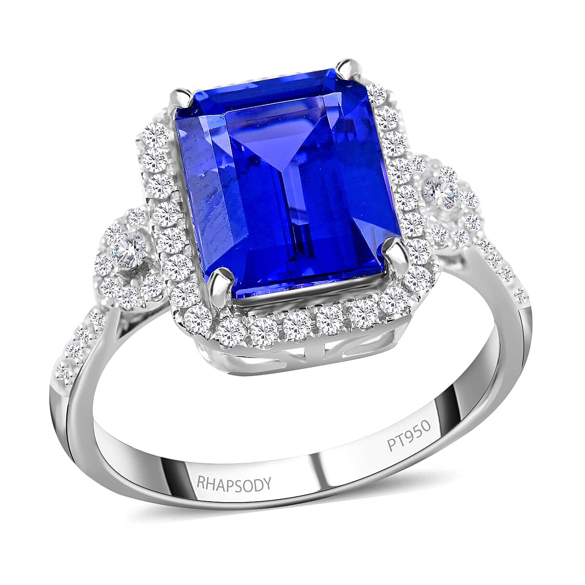 Certified & Appraised Rhapsody 950 Platinum AAAA Tanzanite and E-F VS Diamond Ring (Size 7.0) 5.80 Grams 3.85 ctw (Del. in 10-15 Days)