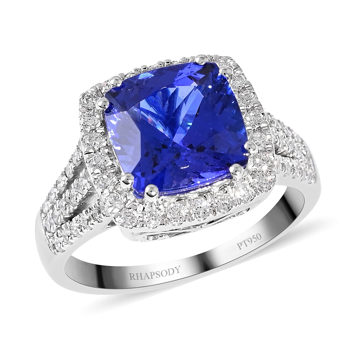 Certified & Appraised RHAPSODY 950 Platinum AAAA Tanzanite and E-F VS Diamond Ring (Size 7.0) 8.50 Grams 5.20 ctw
