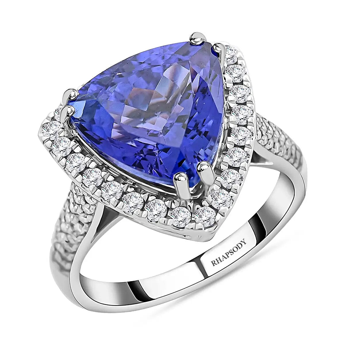 Be the center of attention with this exquisite AAAA tanzanite and diamond halo ring. Its brilliant sparkle captivates from a distance, exuding opulence and luxury. Crafted in platinum with a high-gloss finish, this tanzanite ring is essential to any fine jewelry collection.
