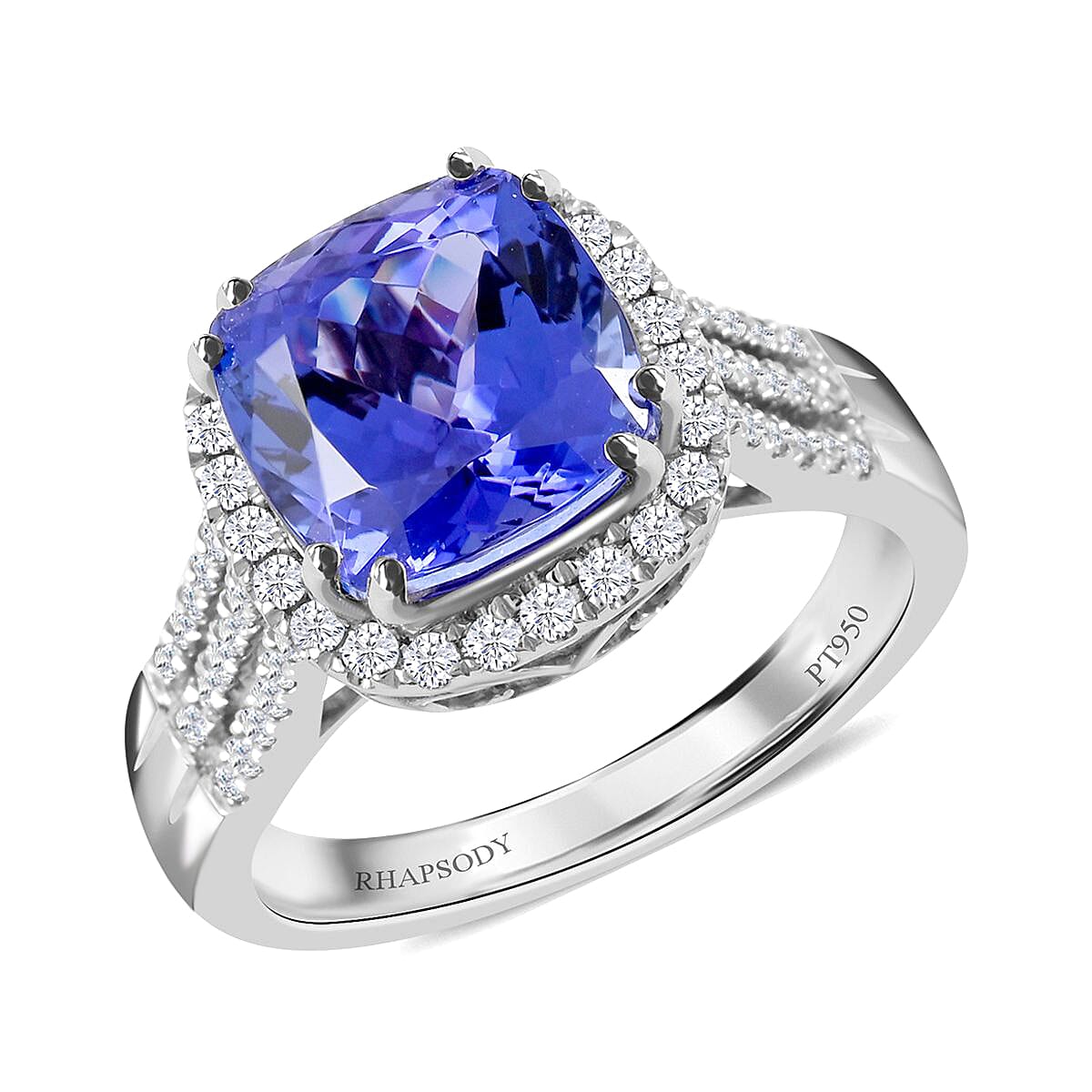 Certified and Appraised Rhapsody 950 Platinum AAAA Tanzanite and E-F VS Diamond Ring (Size 9.0) 8.75 Grams 3.85 ctw