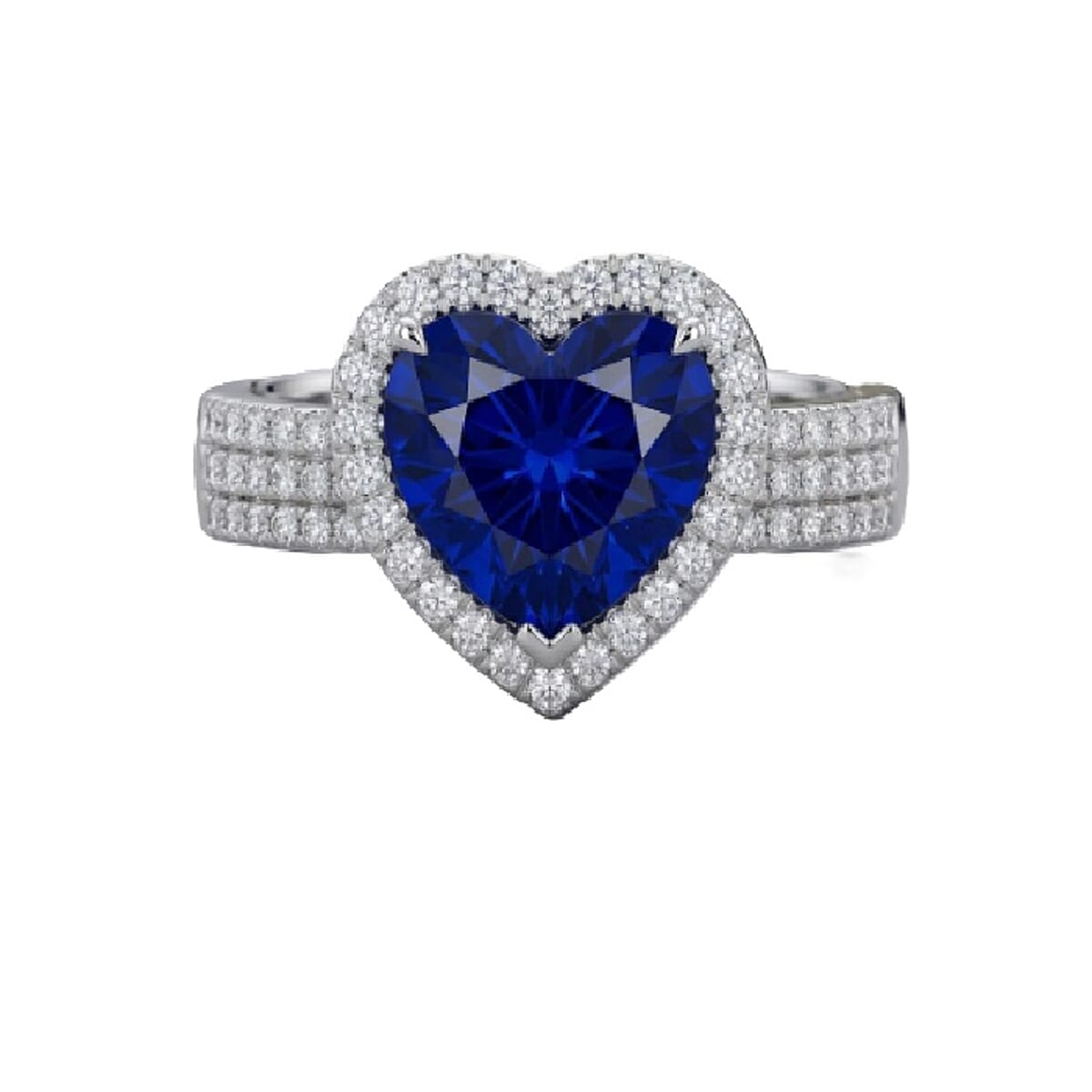Certified & Appraised Rhapsody 950 Platinum AAAA Tanzanite, Diamond (E-F, VS) (0.45 cts) Heart Ring (Size 9.0) (7.20 g) 5.00 ctw