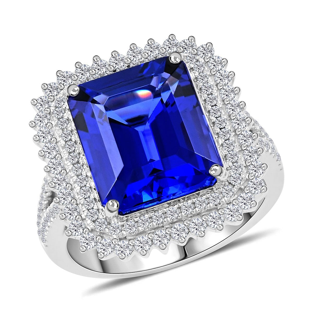 Certified & Appraised Rhapsody 950 Platinum AAAA Tanzanite, Diamond (E-F, VS) (0.73 cts) Ring (Size 7.5) (9.95 g) 7.60 ctw