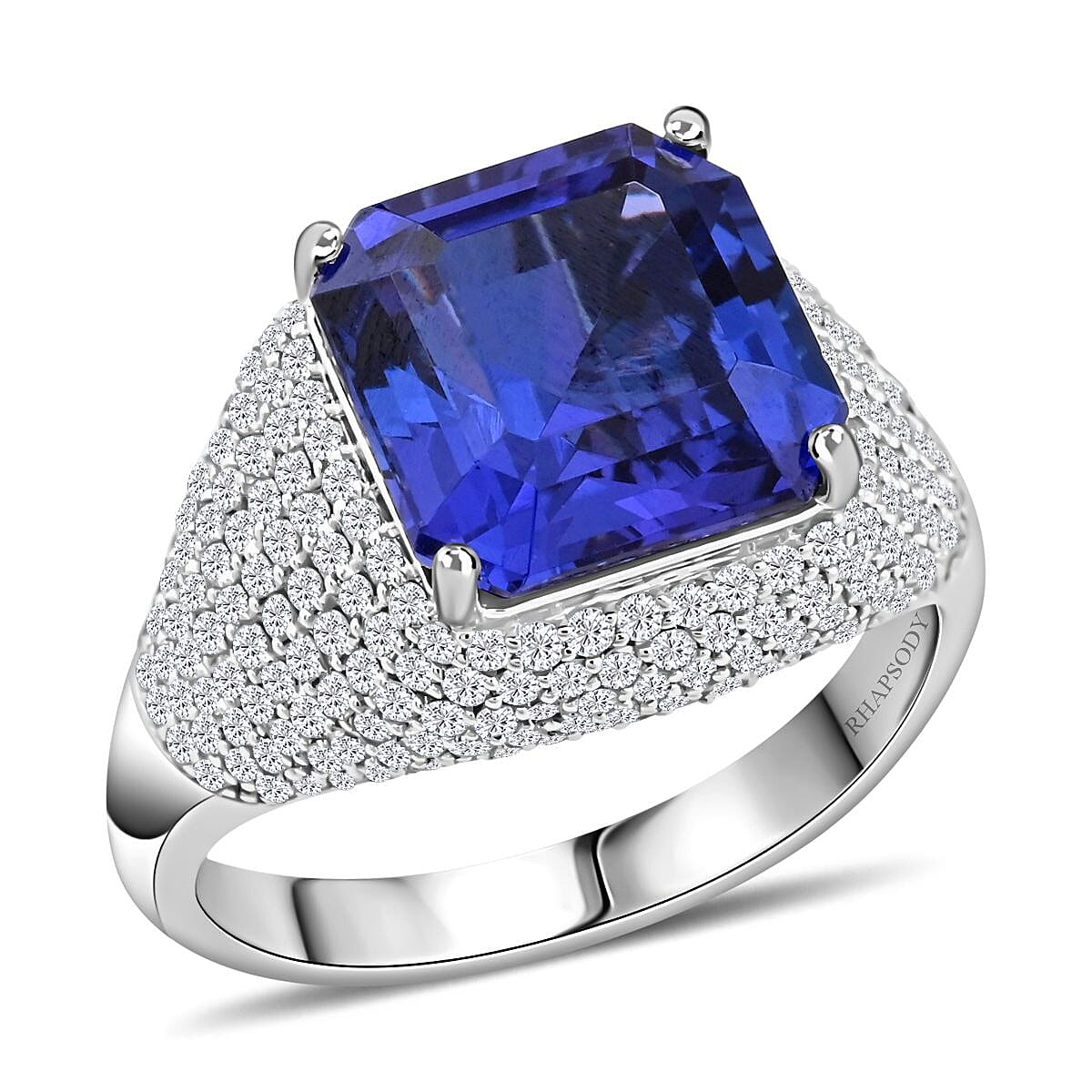 Certified & Appraised Rhapsody 950 Platinum Asscher Cut AAAA Tanzanite and E-F VS Diamond Ring (Size 8.0) 9.15 Grams 6.65 ctw