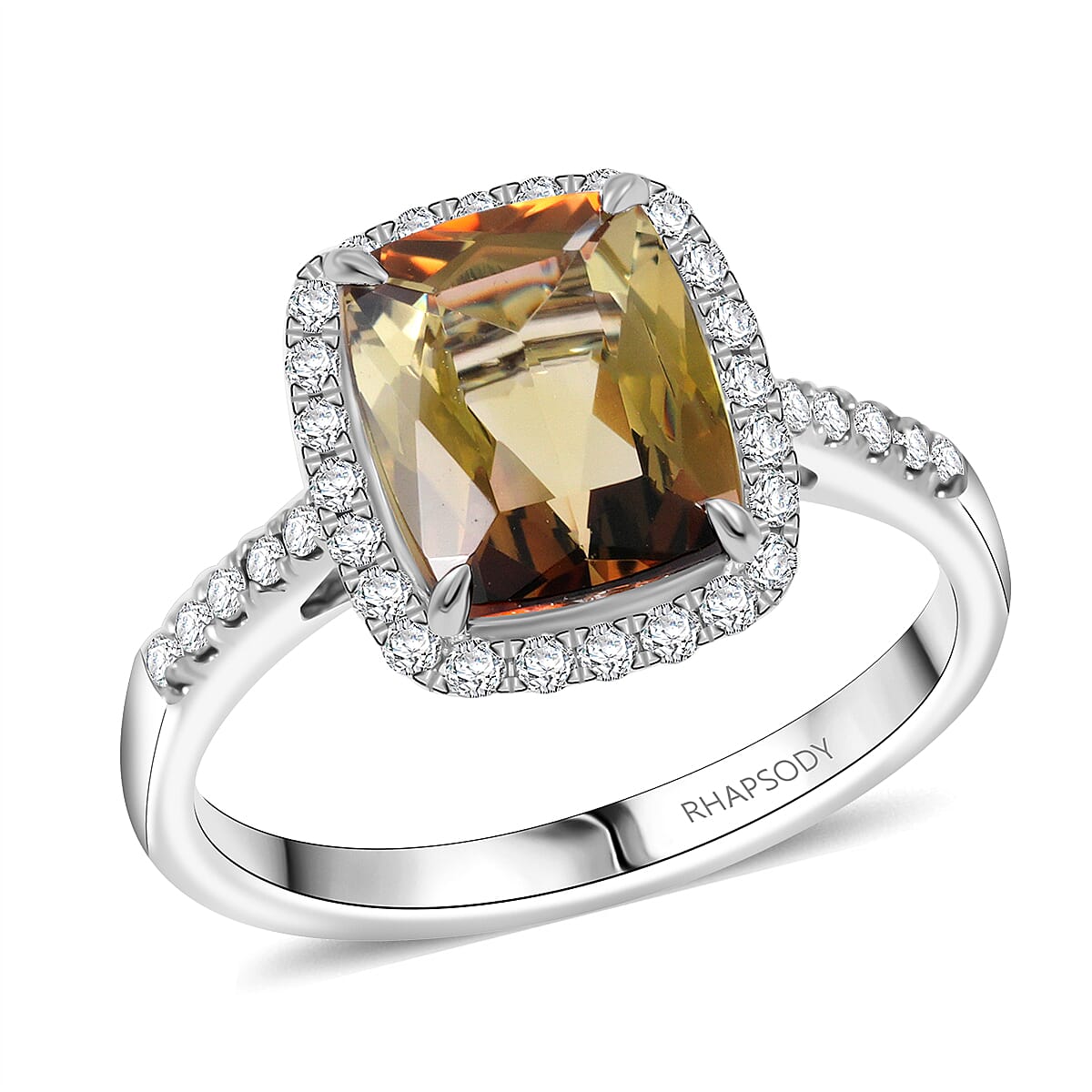 Certified & Appraised Rhapsody AAAA Jenipapo Andalusite and E-F VS Diamond 3.65 ctw Ring in 950 Platinum (Size 8.0) 5.73 Grams