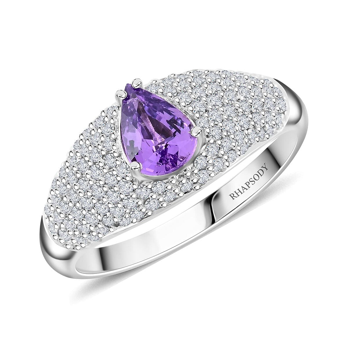 Certified & Appraised Rhapsody AAAA Madagascar Purple Sapphire and E-F VS Diamond 1.25 ctw Ring in 950 Platinum (Size 5.5) 6.10 Grams