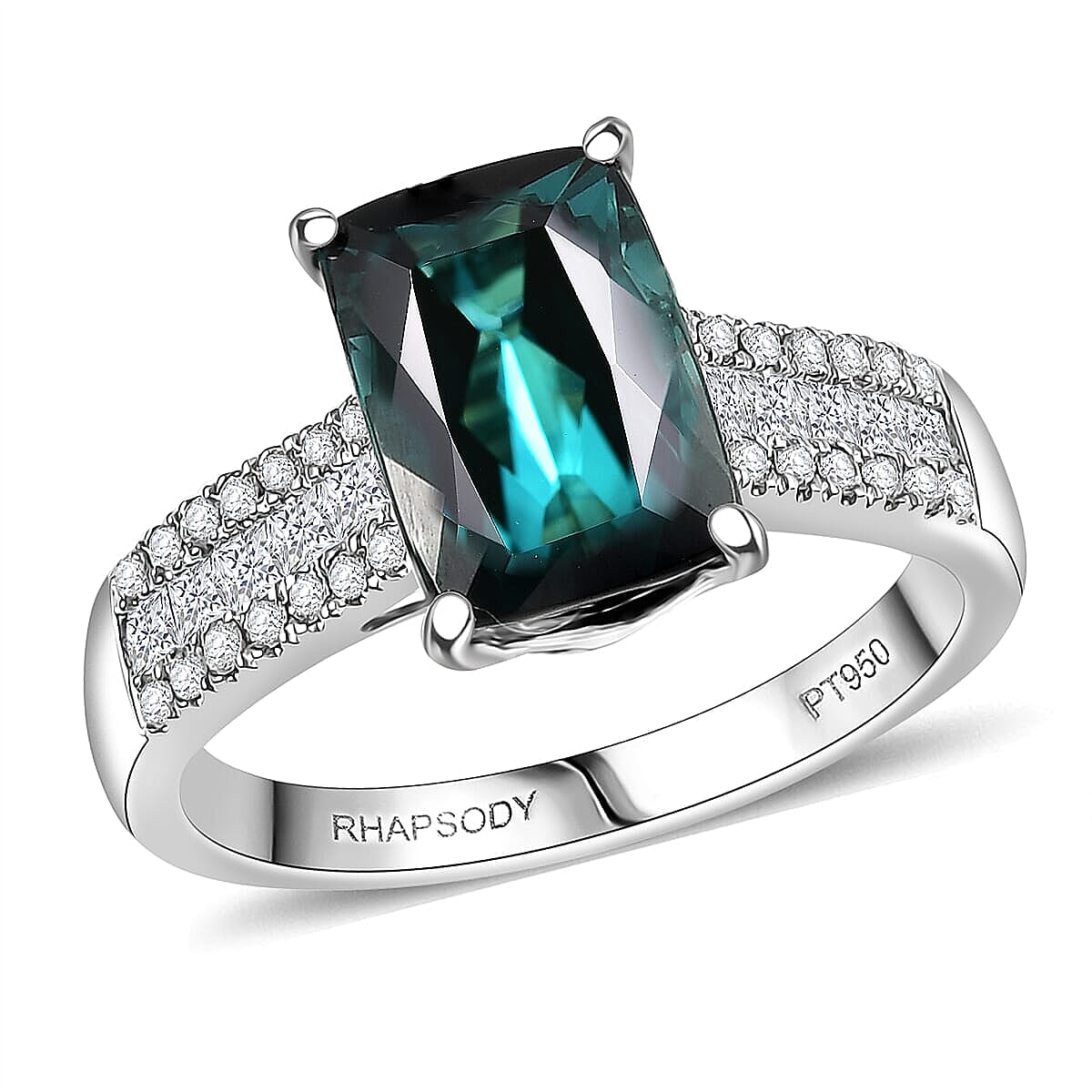 Certified & Appraised Rhapsody AAAA Monte Belo Indicolite and E-F VS Diamond 4.02 ctw Ring in 950 Platinum (Size 7.5) 6.30 Grams