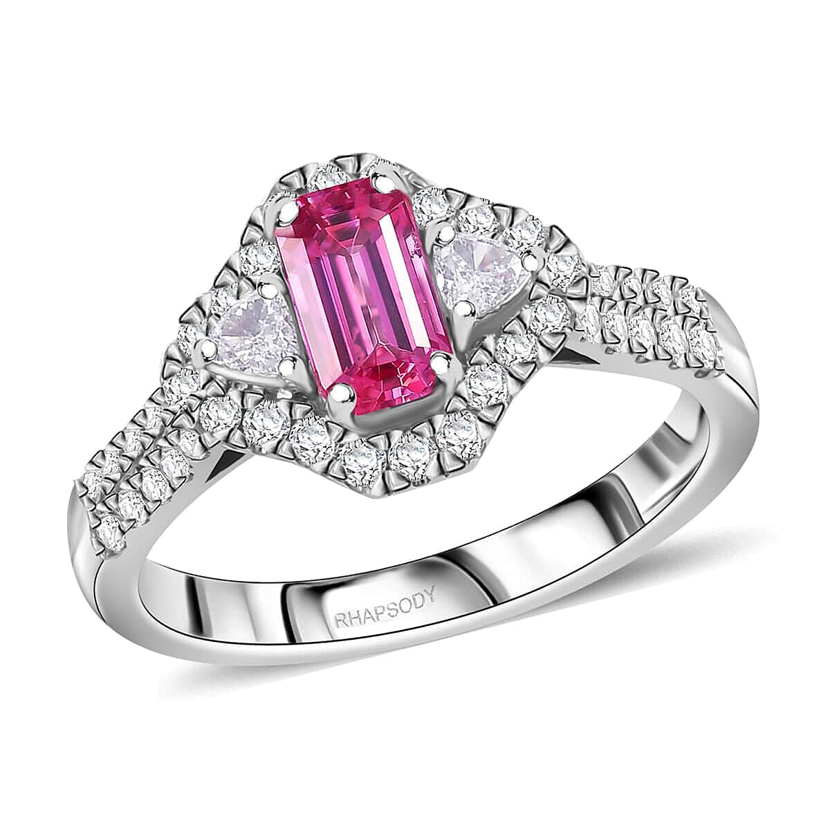 Certified & Appraised Rhapsody AAAA Padparadscha Sapphire and E-F VS2 Diamond 1.72 ctw Ring in 950 Platinum (Size 9.0) 6.50 Grams