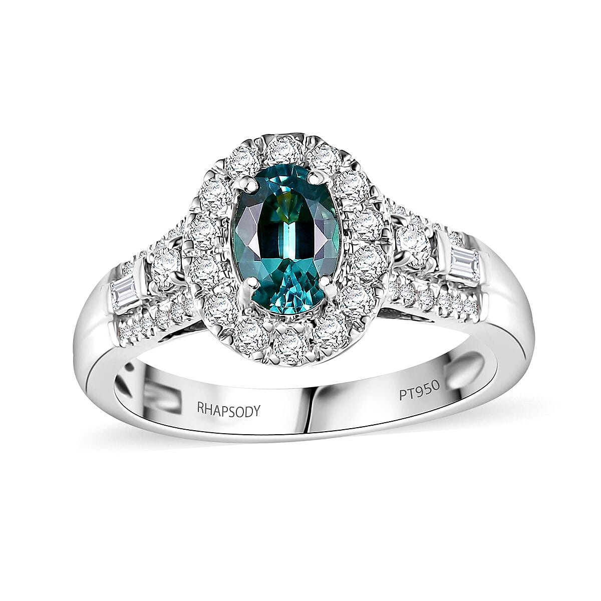 Certified & Appraised Rhapsody AAAA Pirineu Lagoon Tourmaline and E-F VS Diamond 1.15 ctw Ring in 950 Platinum (Size 9.0) 6.05 Grams
