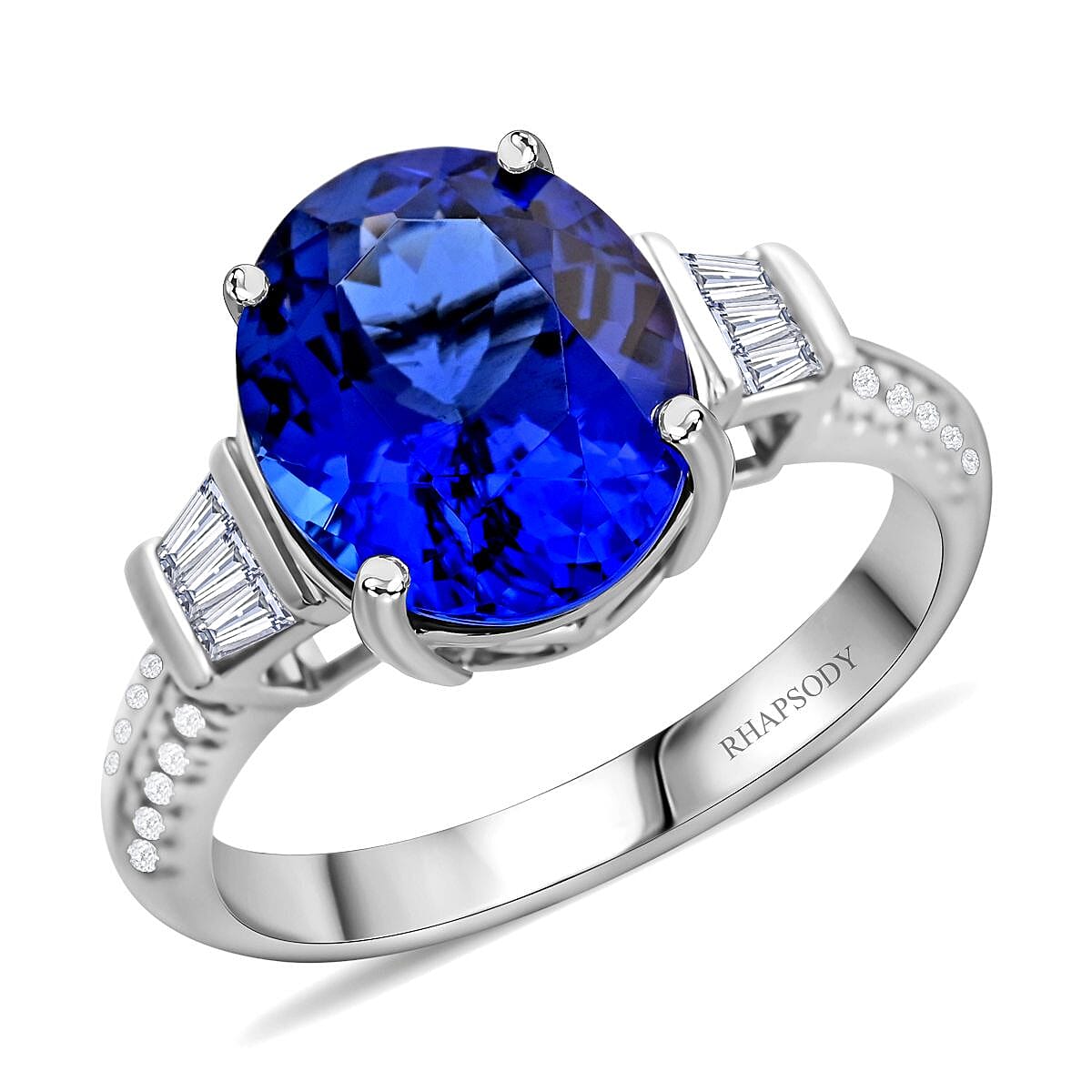 Certified & Appraised Rhapsody AAAA Tanzanite and E-F VS Diamond 4.15 ctw Ring in 950 Platinum (Size 9.0) 6.73 Grams