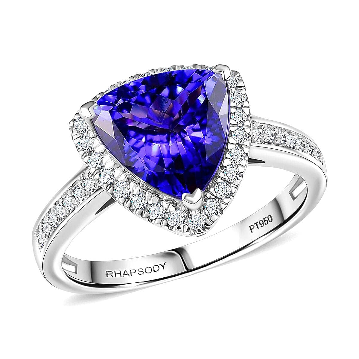 Upgrade your style with this Rhapsody tanzanite and diamond ring in 950 platinum. This elegant gemstone ring for women dazzles with vibrant tanzanite and sparkling diamonds. Perfect for special occasions or adding a luxurious touch to everyday elegance.