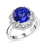 Enhance your look with this Rhapsody AAAA tanzanite and diamond ring in 950 platinum. This exquisite halo ring for women dazzles with vivid tanzanite and sparkling E-F VS diamonds. Perfect for special occasions or adding a luxurious touch of elegance to everyday style.