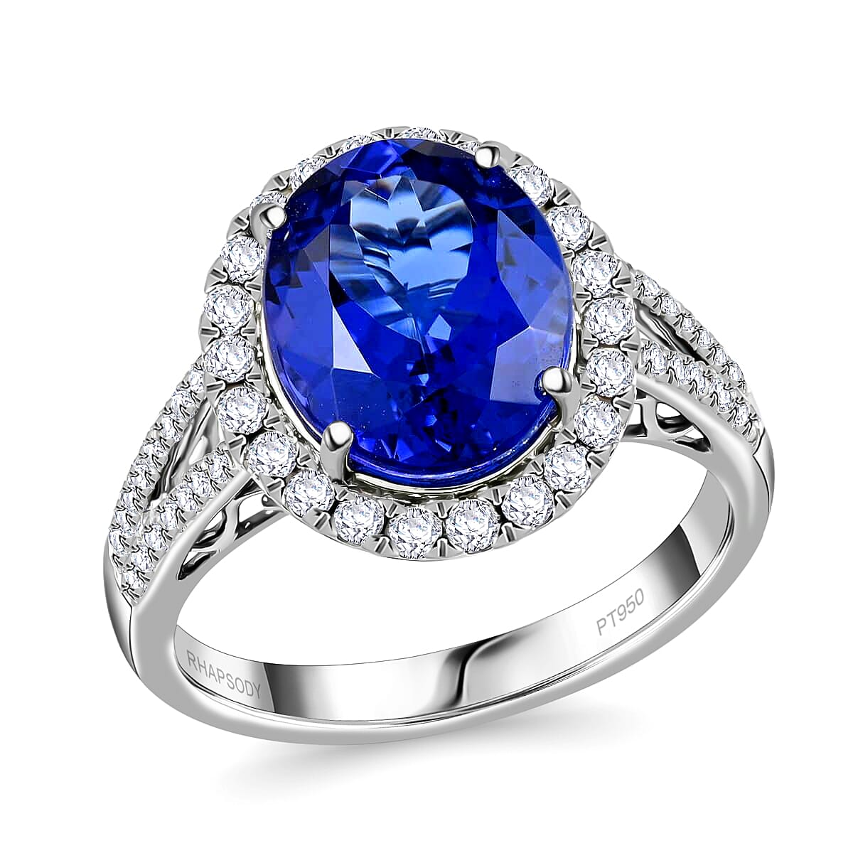 Certified & Appraised Rhapsody AAAA Tanzanite and E-F VS Diamond 5.30 ctw Halo Ring in 950 Platinum (Size 11.0) 6.65 Grams