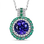 Certified & Appraised Rhapsody AAAA Tanzanite, Colombian Emerald and E-F VS Diamond 4.02 ctw Pendant Necklace in 950 Platinum 6 Grams 18 Inches
