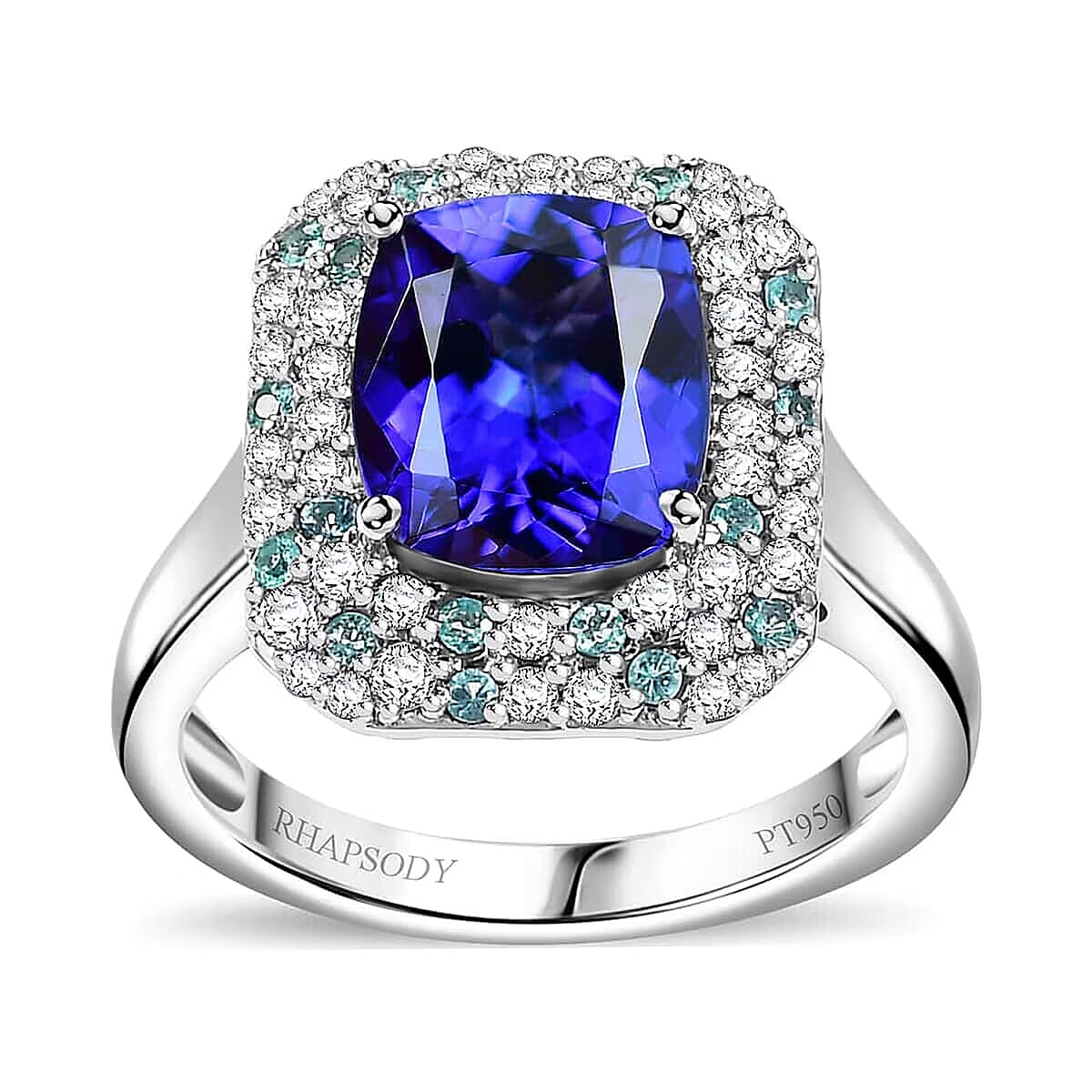 Certified & Appraised Rhapsody AAAA Tanzanite, Paraiba Tourmaline and E-F VS Diamond 4.25 ctw Ring in 950 Platinum (Size 7.0) 8.20 Grams