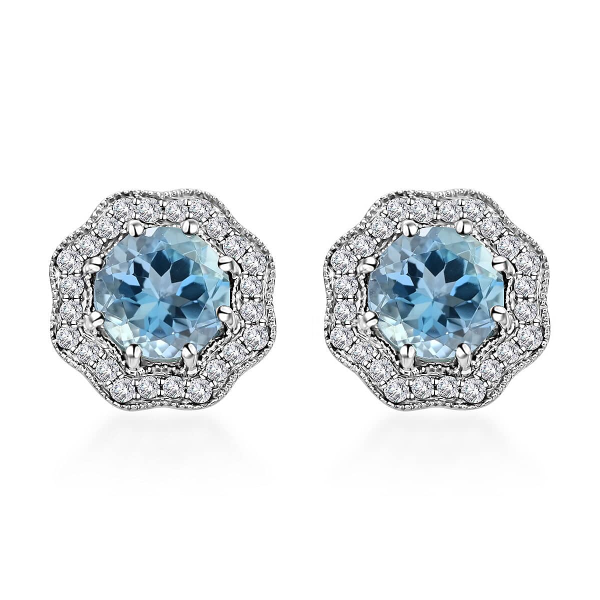 Upgrade your style with these Iliana Santa Maria aquamarine and diamond earrings in 18K white gold. These elegant stud earrings for women feature vibrant aquamarine centers framed by sparkling G-H SI diamonds. Perfect for both everyday wear and special occasions, they add refined sophistication to any look.