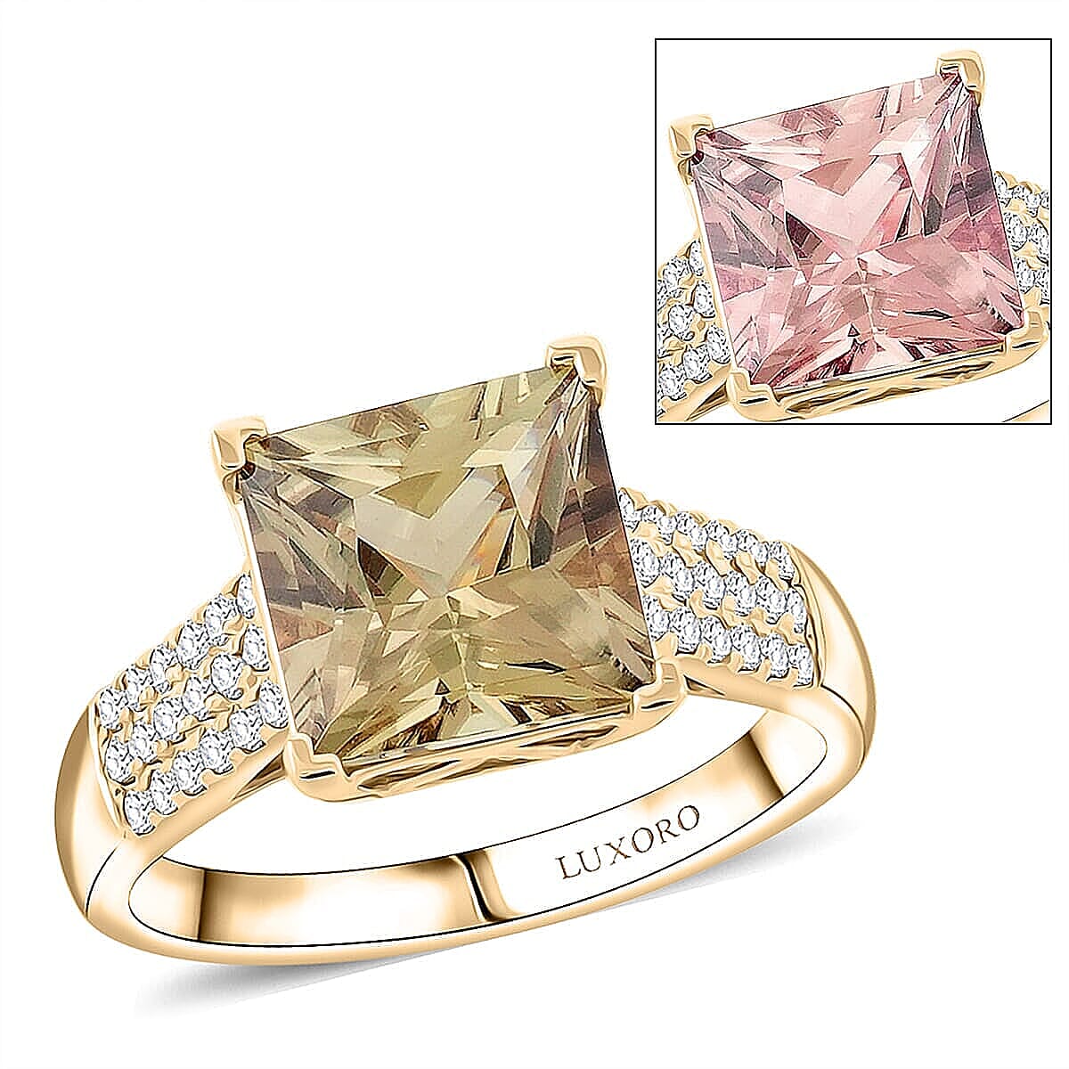 Certified Luxoro AAA Turkizite, Diamond Ring in 10K Yellow Gold 4.36 ctw (Size 5.0)