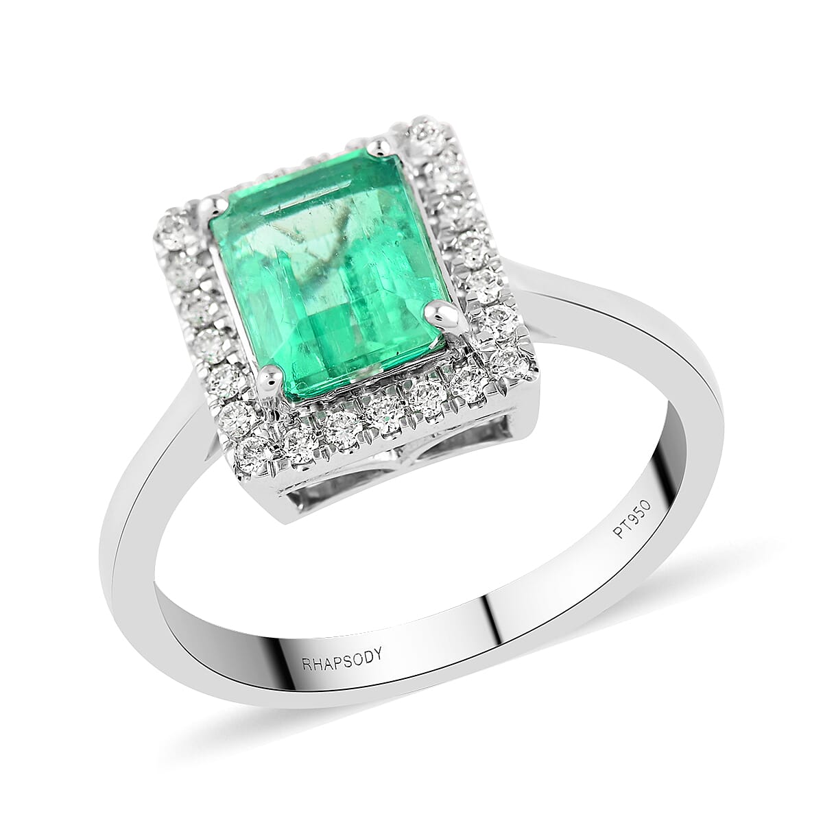 Certified Rhapsody 950 Platinum AAAA Boyaca Colombian Emerald and E-F VS Diamond Halo Ring (Size 8.0) 6 Grams 1.50 ctw
