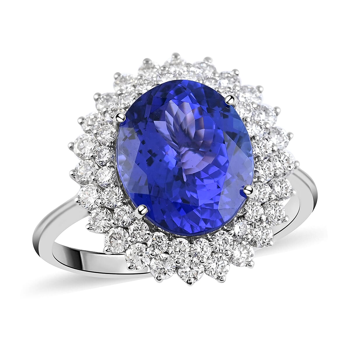 Certified Rhapsody 950 Platinum AAAA Tanzanite and E-F VS Diamond Cocktail Ring (Size 6.0) 5.80 Grams 6.40 ctw