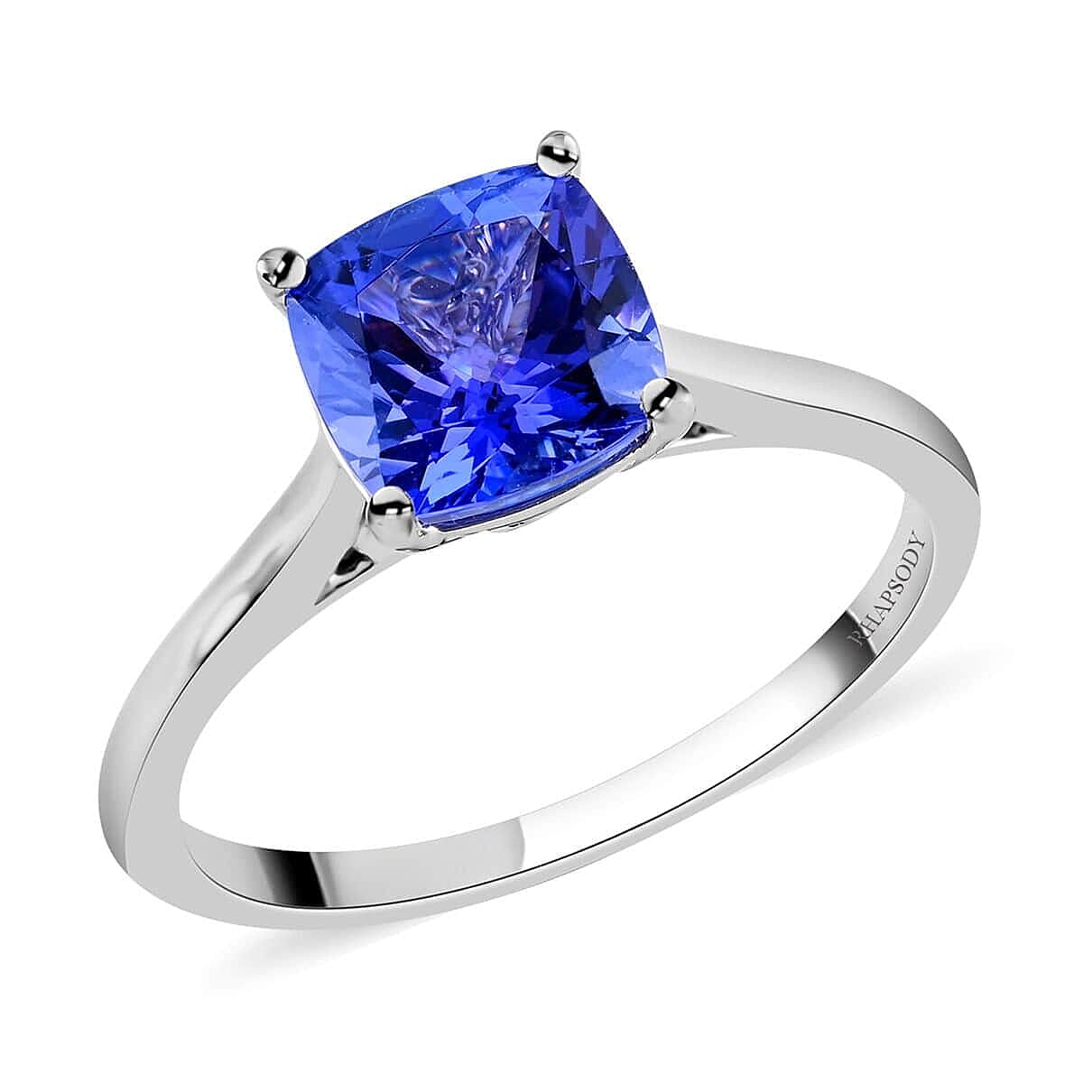 Revel in the prestige and luxury with our Rhapsody 950 platinum AAAA tanzanite ring. Part of the prestigious Rhapsody Collection, this women's ring boasts a rare AAAA Tanzanite, certified and appraised, highlighted by delicately set diamond rounds at the bottom. Its sleek band exudes a timeless elegance, serving as the perfect frame for this regal jewel. This is more than just a tanzanite ring for women; it is a testament to sophistication and class.