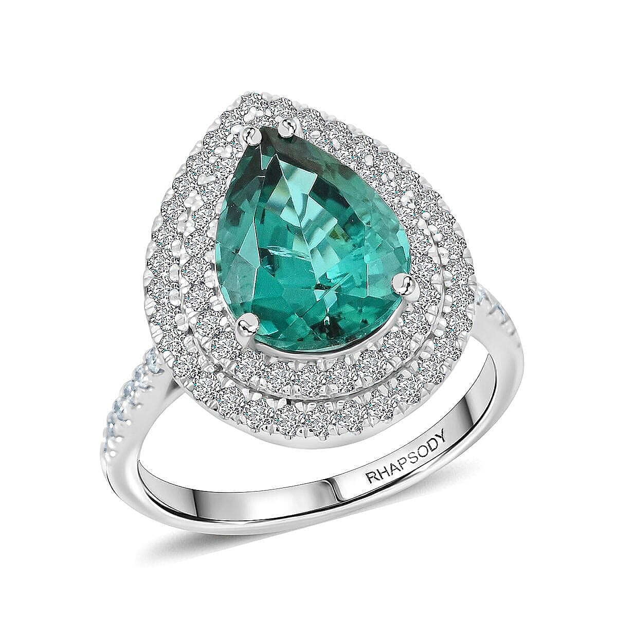 Certified Rhapsody AAAA Pirineu Lagoon Tourmaline, Diamond Ring in 950 Platinum 4.35 ctw (Size 8.5)
